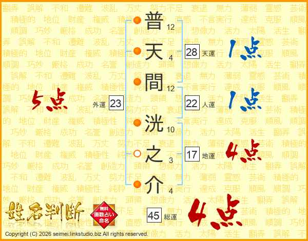 普天間洸之介さんの総運は45画の4点!