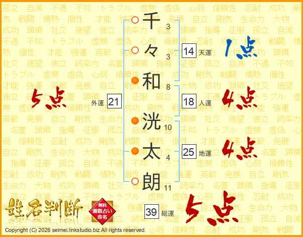 千々和洸太朗さんの総運は39画の5点!