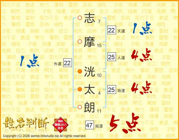 志摩洸太朗さんの総運は47画の5点!