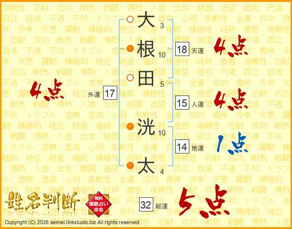 大根田洸太さんの天運は18画の4点!