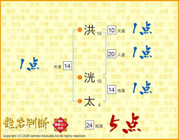 洪洸太さんの総運は24画の5点!