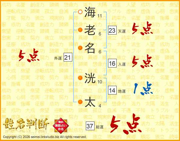 海(11画)老(6画)名(6画) 洸(10画)太(4画)