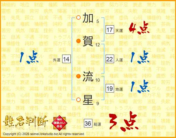 加賀流星さんの外運は14画の1点!