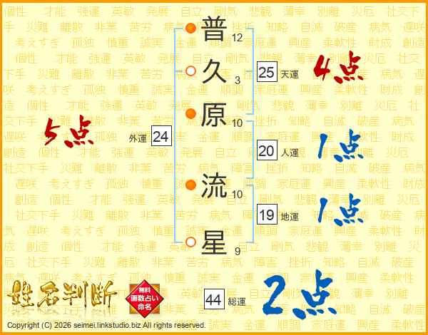 普(12画)久(3画)原(10画) 流(10画)星(9画)