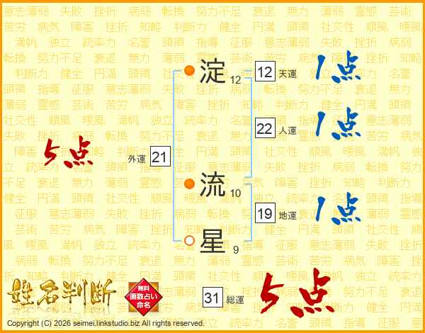淀流星さんの総運は31画の5点!
