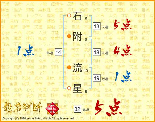 石附流星さんの天運は13画の5点!