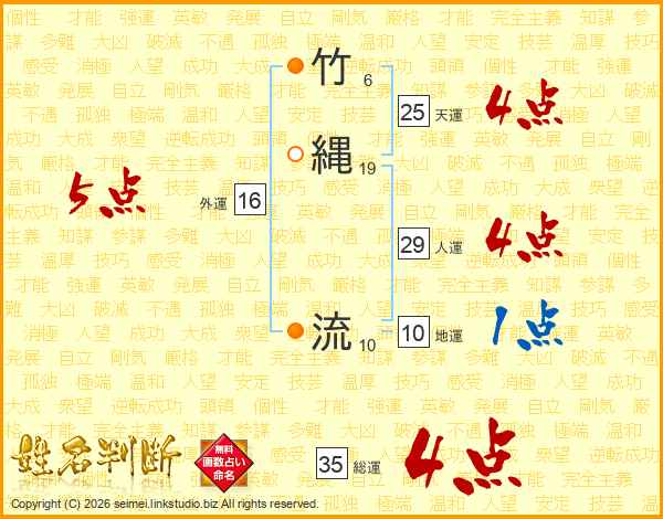 竹縄流さんの総運は35画の4点!