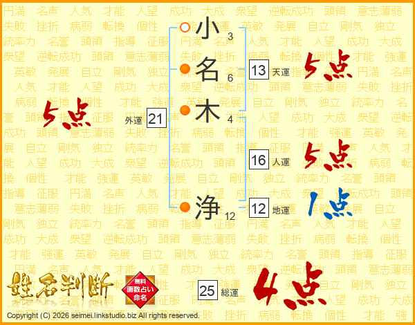 小名木浄さんの総運は25画の4点!