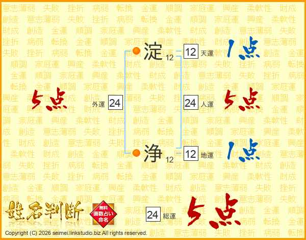 淀浄さんの総運は24画の5点!