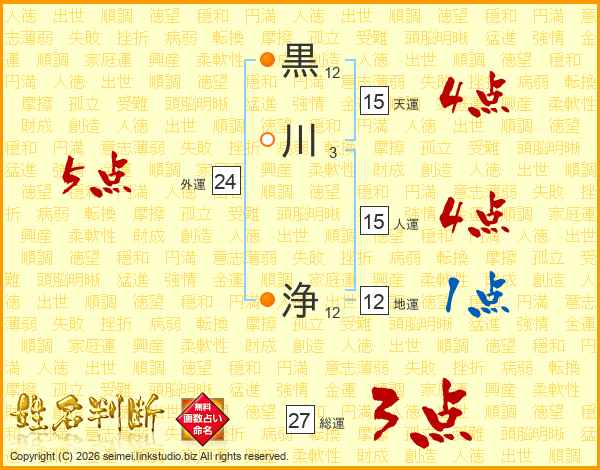 黒川浄さんの総運は27画の3点!