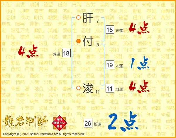 肝付浚さんの総運は26画の2点!