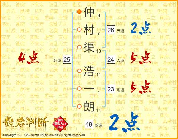 仲村渠浩一朗さんの天運は26画の2点!