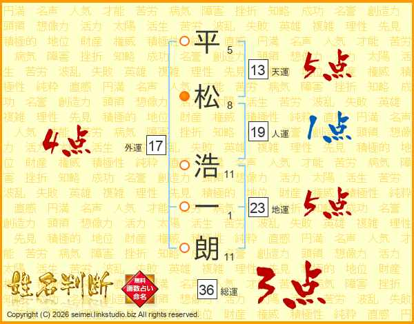平松浩一朗さんの総運は36画の3点!