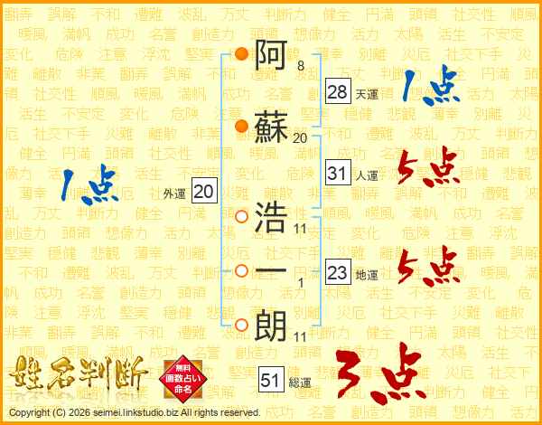 阿蘇浩一朗さんの総運は51画の3点!