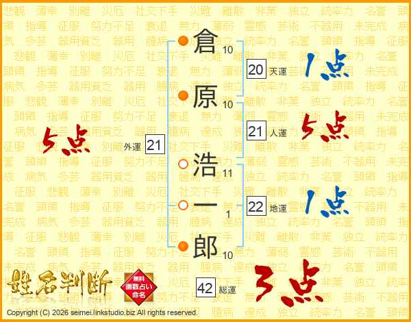 倉(10画)原(10画) 浩(11画)一(1画)郎(10画)