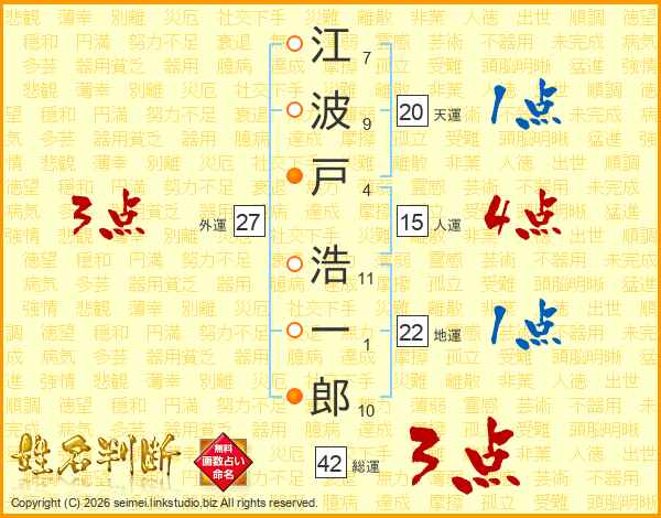 江波戸浩一郎さんの総運は42画の3点!