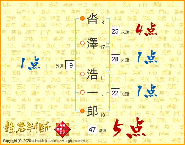 沓澤浩一郎さんの総運は47画の5点!