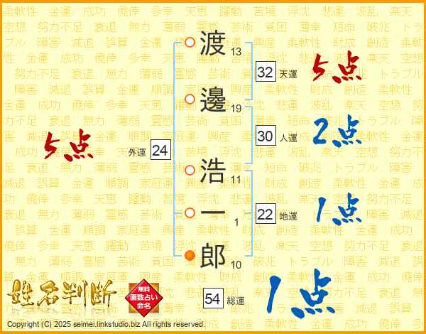渡邊浩一郎さんの天運は32画の5点!