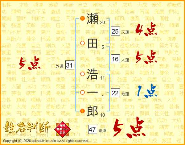 瀬田浩一郎さんの総運は47画の5点!