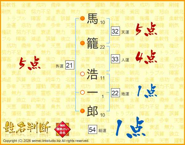 馬(10画)籠(22画) 浩(11画)一(1画)郎(10画)