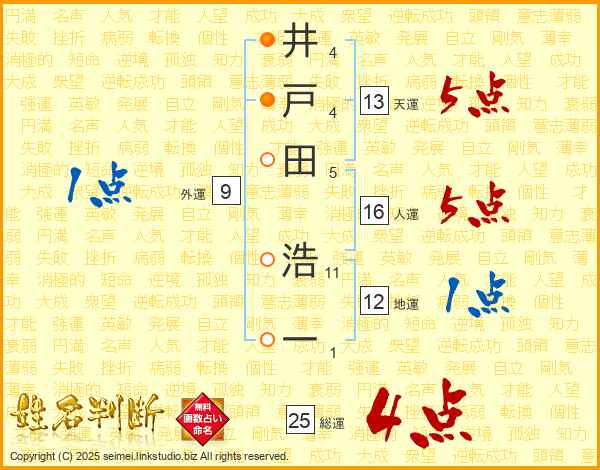 井(4画)戸(4画)田(5画) 浩(11画)一(1画)