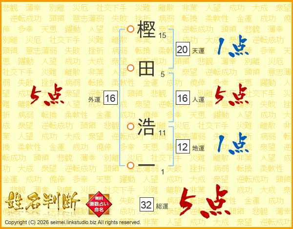 樫田浩一さんの総運は32画の5点!