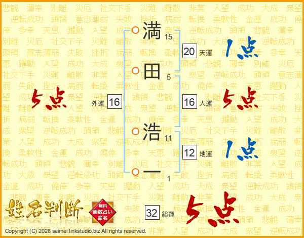 満田浩一さんの総運は32画の5点!