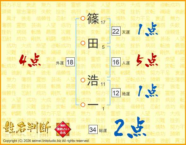 篠田浩一さんの外運は18画の4点!