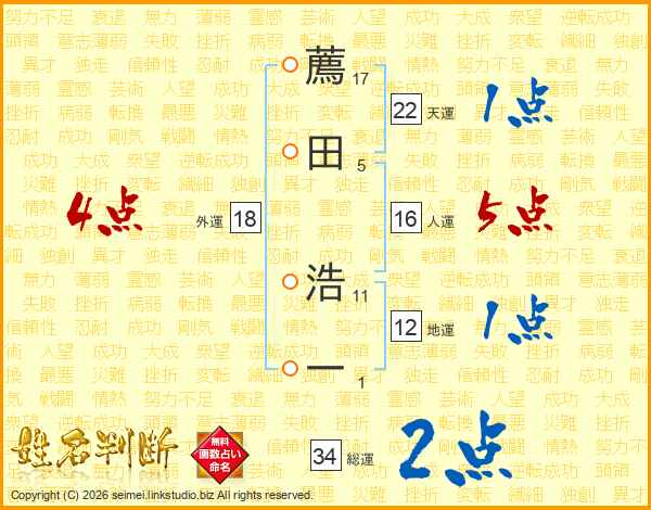 薦田浩一さんの総運は34画の2点!