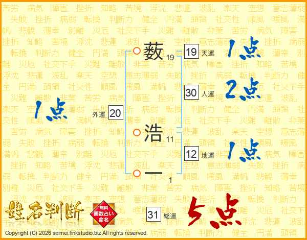 薮浩一さんの総運は31画の5点!