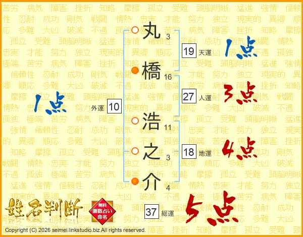 丸橋浩之介さんの総運は37画の5点!