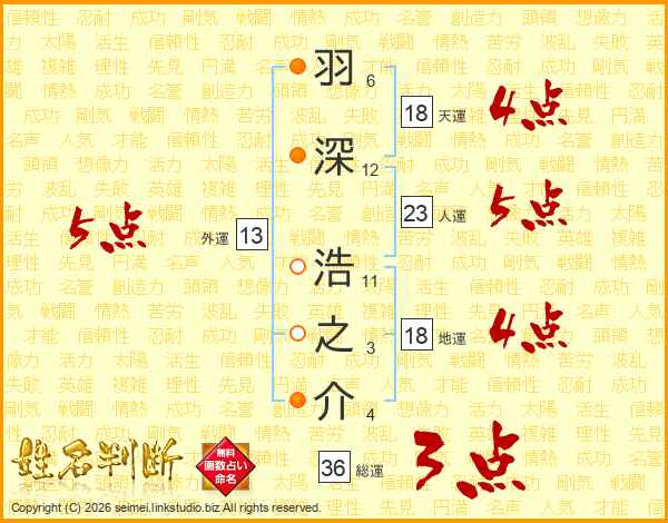 羽深浩之介さんの天運は18画の4点!
