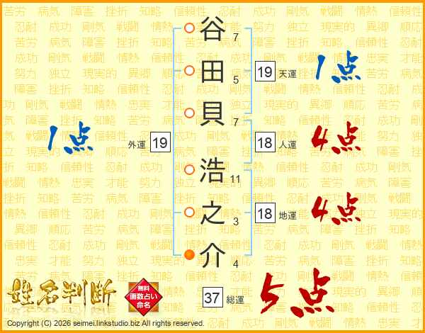 谷(7画)田(5画)貝(7画) 浩(11画)之(3画)介(4画)