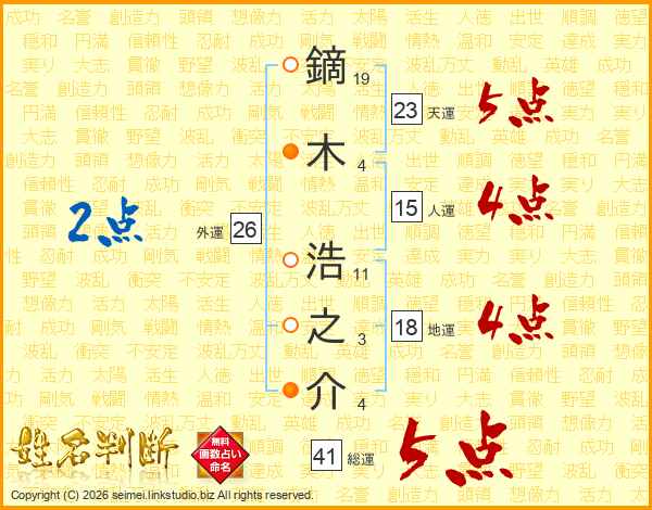 鏑(19画)木(4画) 浩(11画)之(3画)介(4画)