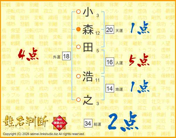 小(3画)森(12画)田(5画) 浩(11画)之(3画)