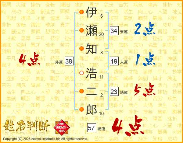 伊瀬知浩二郎さんの総運は57画の4点!