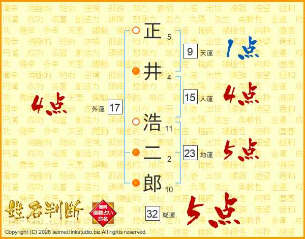 正(5画)井(4画) 浩(11画)二(2画)郎(10画)