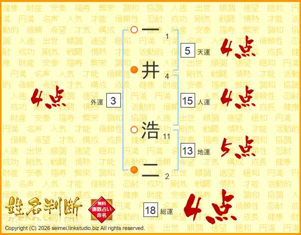 一井浩二さんの総運は18画の4点!