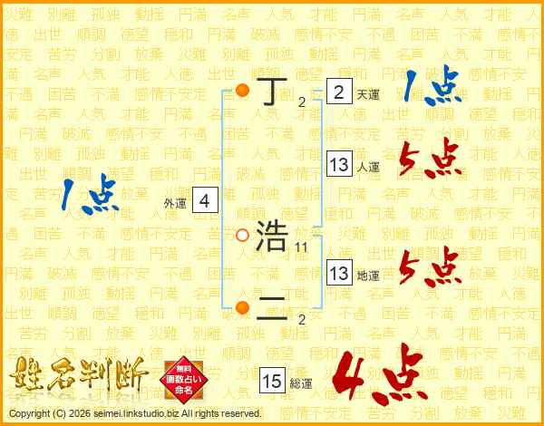 丁浩二さんの総運は15画の4点!