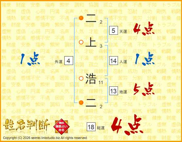 二上浩二さんの総運は18画の4点!