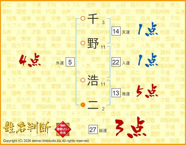 千野浩二さんの人運は22画の1点!