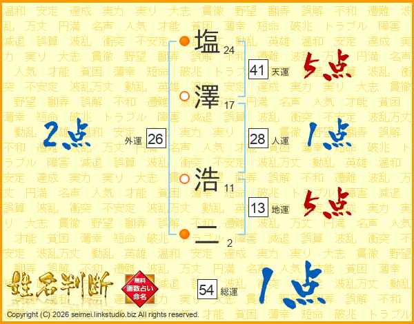 塩澤浩二さんの天運は41画の5点!