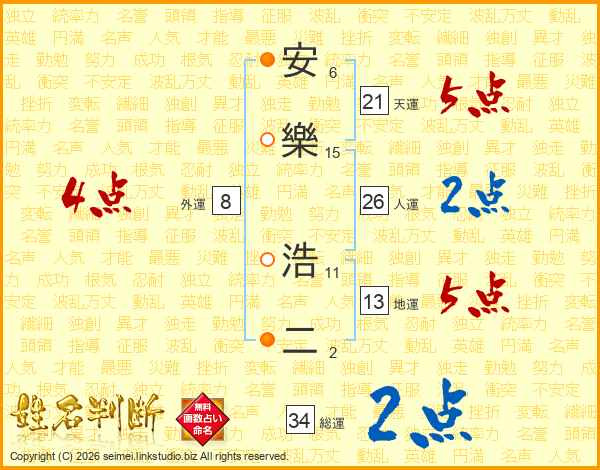 安樂浩二さんの天運は21画の5点!