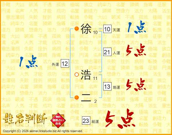 徐浩二さんの総運は23画の5点!