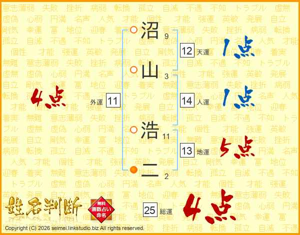 沼山浩二さんの人運は14画の1点!