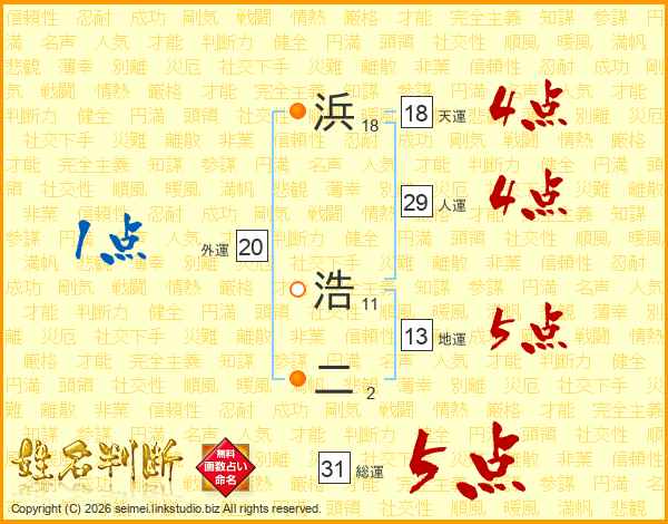 浜浩二さんの総運は31画の5点!