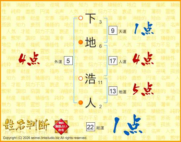 下地浩人さんの人運は17画の4点!