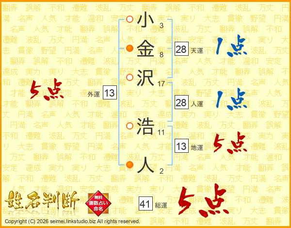 小金沢浩人さんの総運は41画の5点!