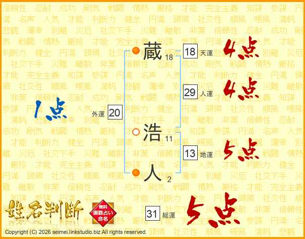 蔵浩人さんの総運は31画の5点!