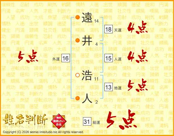 遠井浩人さんの総運は31画の5点!